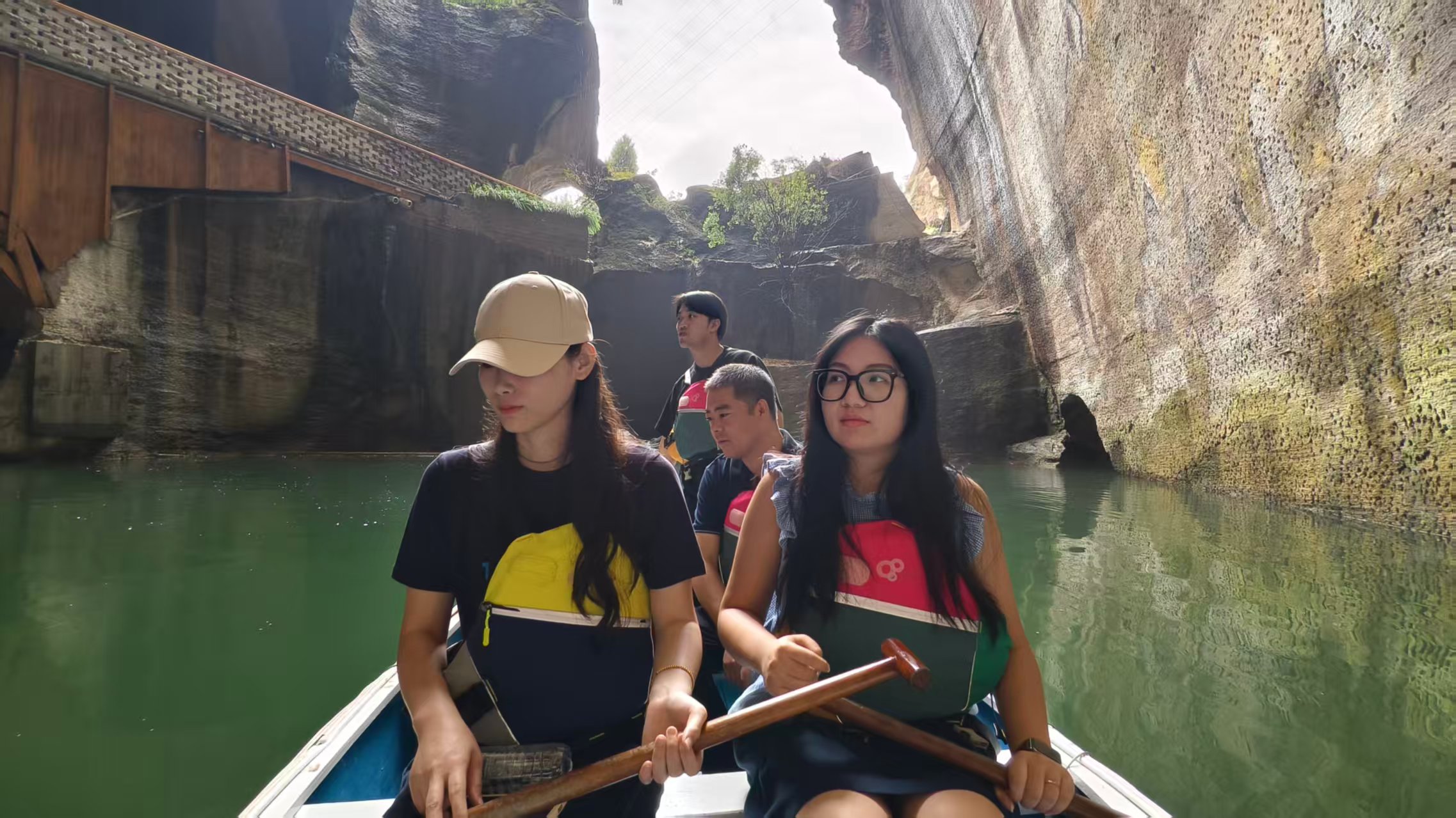 अद्वितीय "खाली पहाडहरूमा डुating्गा": रमणीय क्षेत्रमा पानी ठाडो र तेर्सो छ, र तपाईं डुङ्गा द्वारा गुफाहरू बीच शटल गर्न सक्नुहुन्छ। हरियो पानीको सतह कुनै नराम्रो चट्टानको पर्खालसँग एकदमै विपरीत छ, मानौं कुनै पृथक गोप्य क्षेत्रमा प्रवेश गर्दै, र फोटो खिच्नु चित्र भन्दा बाहिर छ।